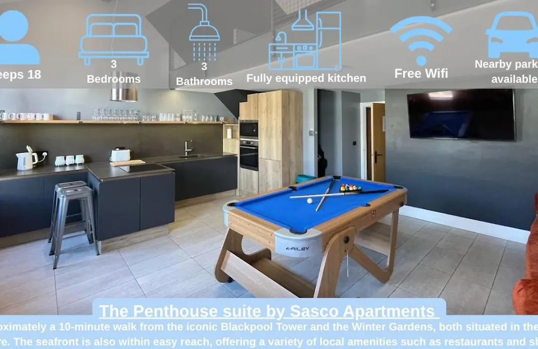 Gasten kunnen kiezen voor een verblijf in The Luxury Penthouse By Sasco Apartments wanneer ze de North Shore wijk van de stad in Blackpool bezoeken.